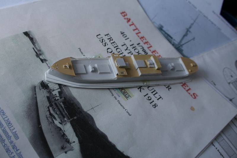 My reference photos allowed me to add extra detail to my build of the ship. At this stage I decided to have the ship lying to a buoy light, so that more of the underwater hull would be visible, as the kit shows the vessel at near full load. I liked the slightly ungainly look of the high on her marks as seen in many photos, so the first thing to add was additional plastic shims to gain the extra depth.