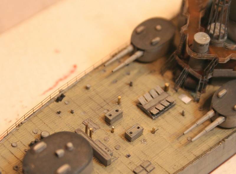 All of the deck detail was added using circles of wire( wound around suitable size l drill shank) for coal scuttles and deck lights, brass and styrene rod for vent pipes as well as paper and PE hatch covers etc.