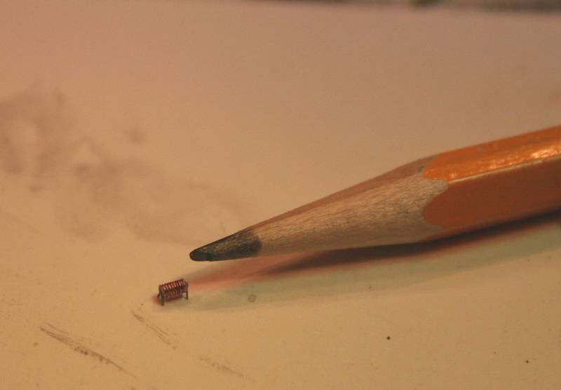 Careful study of photos established their location and comparative dimensions. I made all these by wrapping fine copper wire of various sizes around appropriate size styrene rod, sealing with CA glue and once cut to size fastening to pieces of fine handrail as the brackets--some of the larger reels had etched discs added. The photos show the small aft reel before paint and some of the vertical; and suspended reels at the aft end of the superstructure.