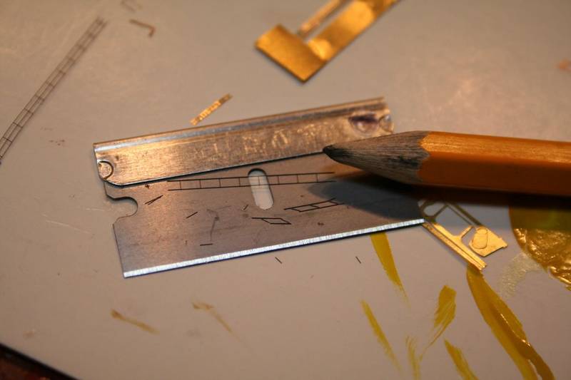 The catwalk between the deckhouses was a strip of brass furnished with handrails. All stairs were replaced with WEM items—however because these were significantly steeper—so I elongated the siderails of the PE to conform to the desired angle.