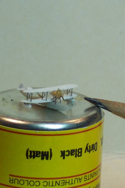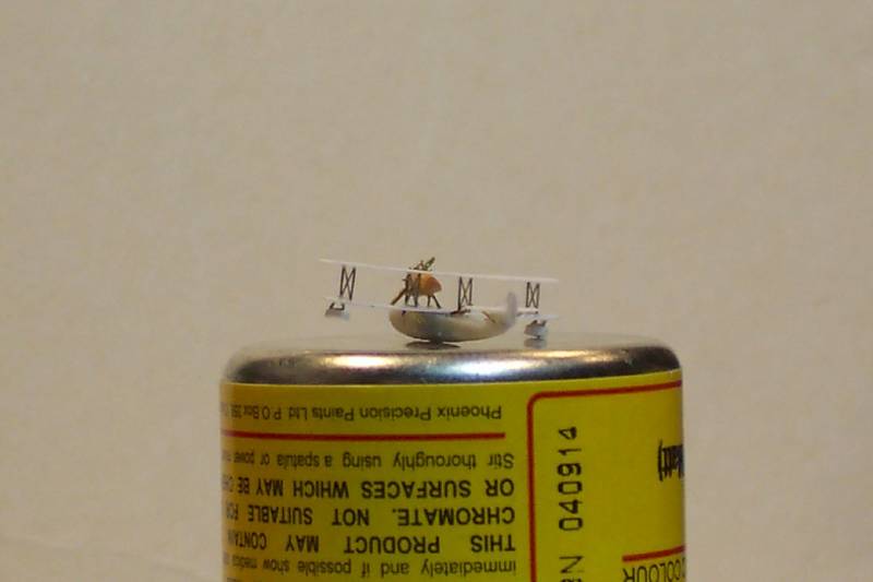 Pieces of cut down handrail were used for the struts under the tailplane and main wings and also to make the twin barrels of the aft cockpit machine guns. I utilised the interplane struts from a GMM PE fret-this ensured absolute symetry. When painted I applied some Soviet star decals from a Pitroad set-alas these had white centres-so I handpainted the inside of the stars in solid red. I rigged the aircraft with stretched sprue.