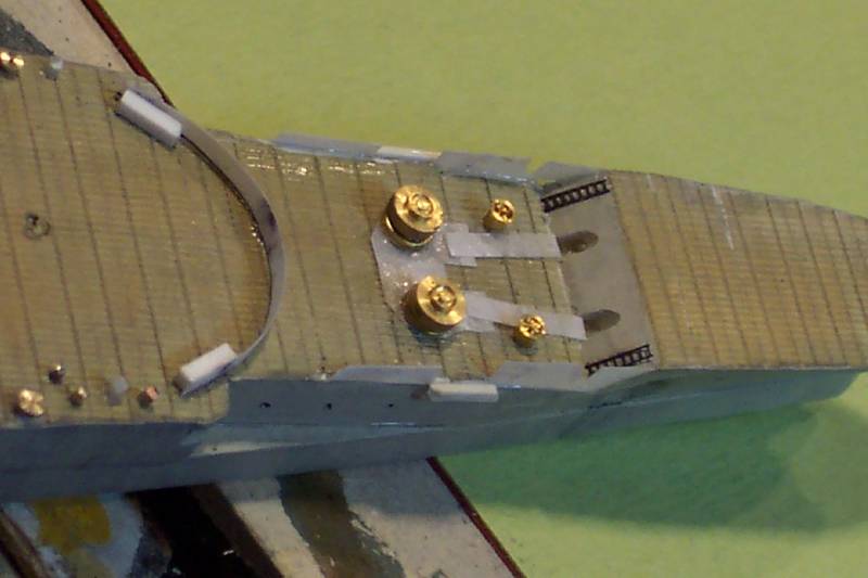 The forward bulwarks adjacent to the anchor windlasses were made of  paper  infused with  CA, as were the chainways and the fwd breakwater. The main  capstans and windlasses  were made of  modelrailway locomotive washout plugs on 4mm scale( OO/Ho and 2mm ( N-scale) scale respectively. One should never underestimate the value of a trawl through a well stocked modelrailway shop,  for brass bits as well as alternative PE parts--many of which have great 'crossover' value.