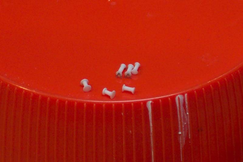 Alongside the breakwater, vertically beside the forward and aft bridge structure there were required large cable reels-of un-usual proportions compared to European/US types. I made the drums and ends by placing a heated smooth knife blade to styrene rod and allowing to cool before removing. These items then had their support legs added using scrap handrail parts folded into a triangle; both easy and effective in a small scale.