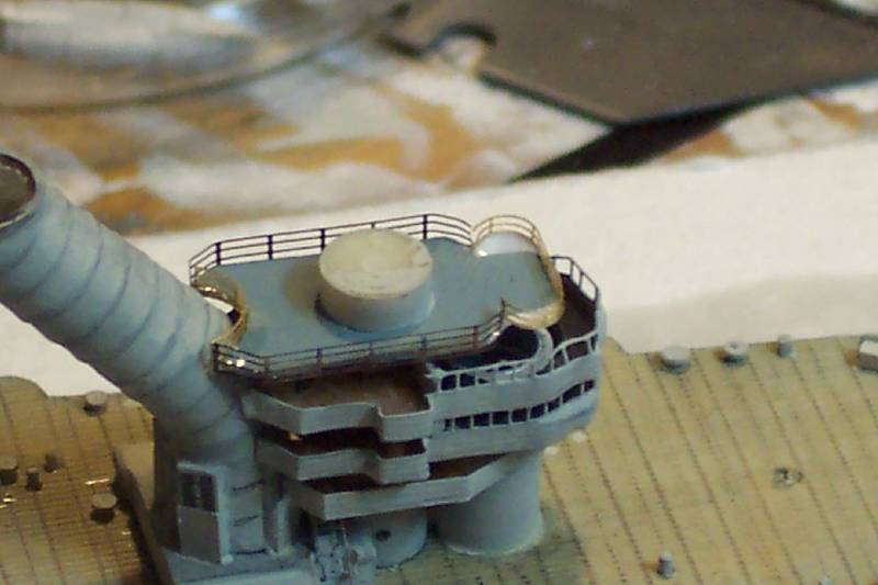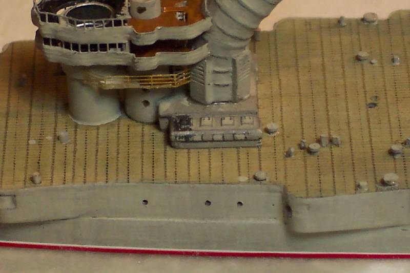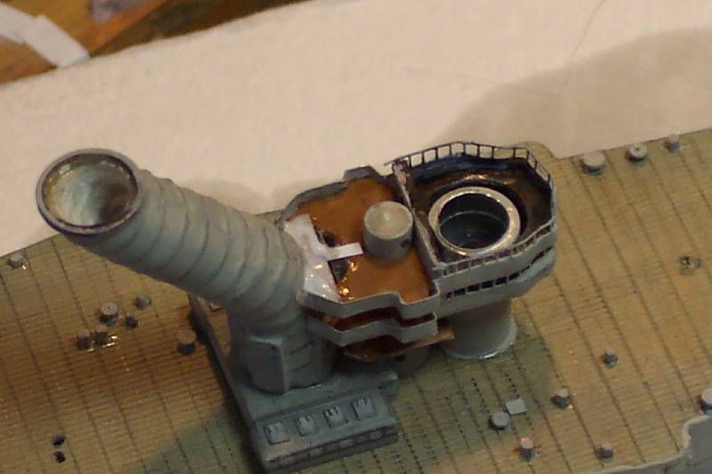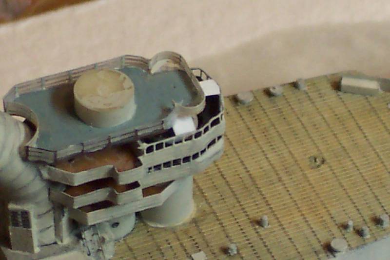 As all stairs between the bridge levels are visible from certain angles cutouts had to be made and the twinsets of stairs inserted at every decklevel, this required some creative deck carving and adjustment-accomplished by the judicious use of white glue and slips of paper