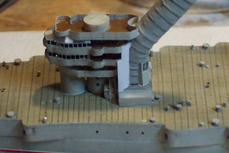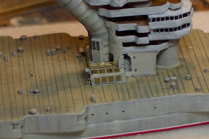 Paper was used again for the 'false wall' alongside the lower conning tower, with the stair aperture within. The funnel base inspection hatches were made of brass PE scrap, these were removed and re-applied after I had seen this photo!!