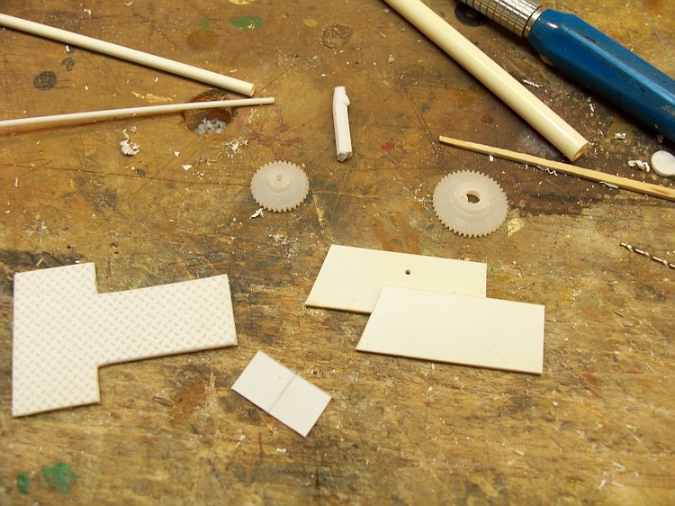 Sheet plastic was cut out for sides of the wench and holes for the shafts.