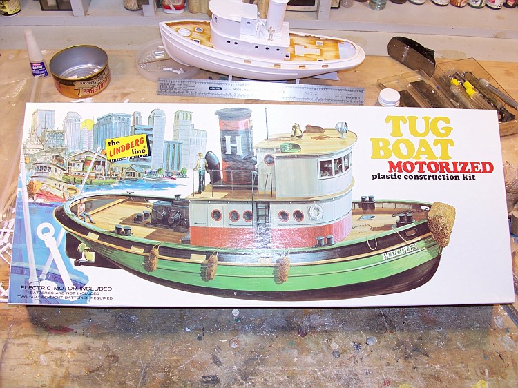 I wanted my second tugboat to look similar to the first only a little older, more weathered and stripped of salvageable parts.. I started with an unopened kit that I found on eBay.