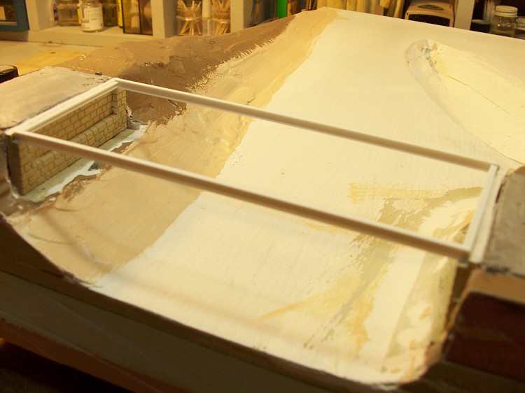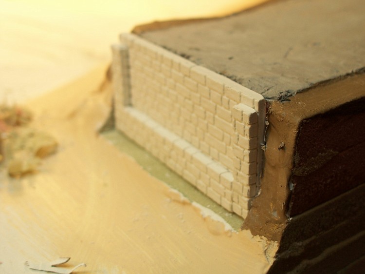 With the plain flat wall fitted in position there was a lack of any detail, so I added another layer in the front, which would also serve as support for the bridge girders.