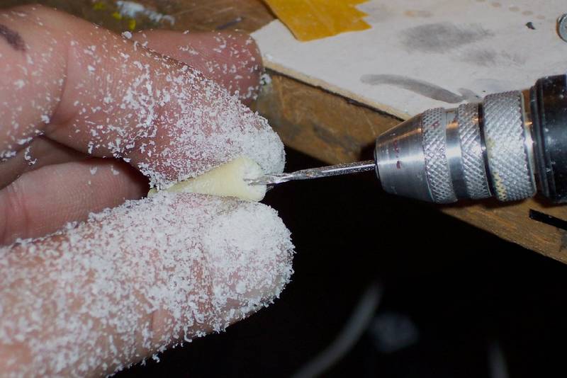 The solid funnels had their centers drilled out--care was needed here to prevent distortion being caused by heat build-up from the cutting tool.