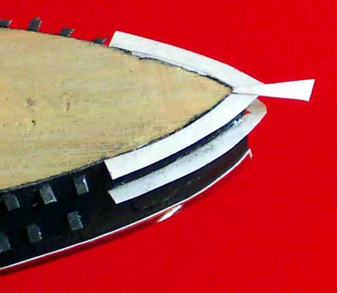 A suggestion for the next time you have to plug a large section of hull (as you did with the sacrificial gun turret in this build): try some Aves Apoxie Sculpt.  It's an acrylic two-part sculpting clay.  It dries super hard, sands and feathers like a dream, and it will hold an edge.  You might have trouble making it out in  this picture  but I was able to get that end of the hull razor thin using Aves (I had to resculpt that edge after the hull took a nose-dive to the floor).  I was able sand it down so sharp it became a translucent knife-edge.