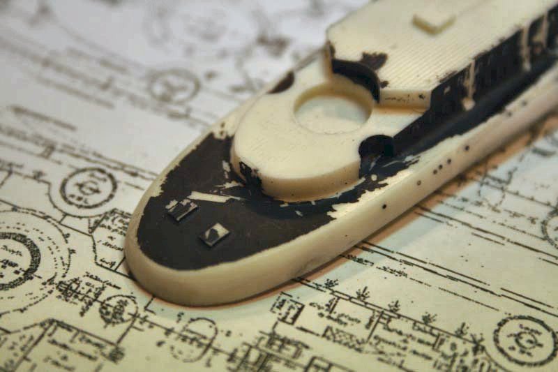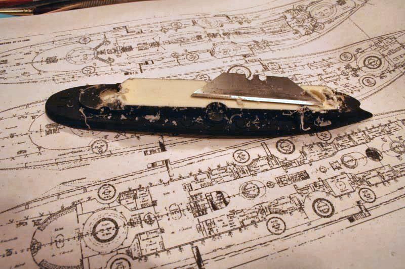 These flaws were rectified by adding styrene strips to the midships areas and fairing in carefully.