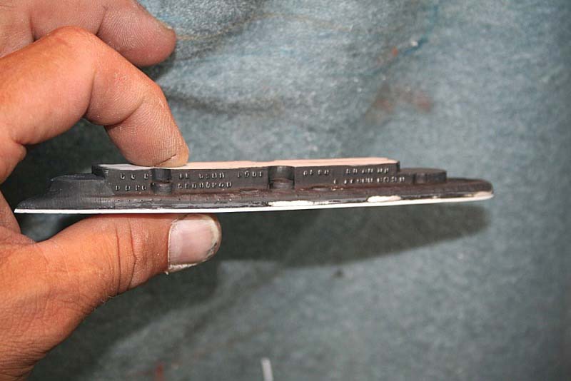 Having changed the shapes, extended and widened decks, cut away all the cast lumps, and being dissatisfied with the barbette positioning and arrangements I decided to re-deck the ship, this being achieved by first paring down the existing deck to maintain the correct aspect ratio, filling the holes and covering with evergreen car siding.