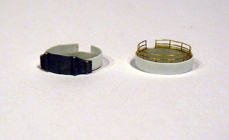I added inclined ladders to the starboard side of the forward Quad 40mm and on the starboard O2 level. (There was not a corresponding ladder on the port side on the Dux, which I found to be rather odd.)
