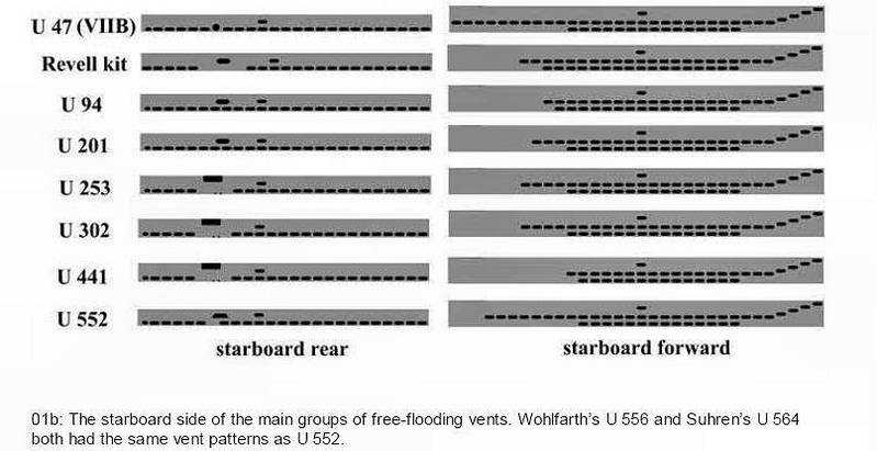 Note that even although U 94 and U 201 were both built at the Friedrich Krupp Germaniawerft A.G. shipyards in Kiel, there were still small differences in their vent patterns.