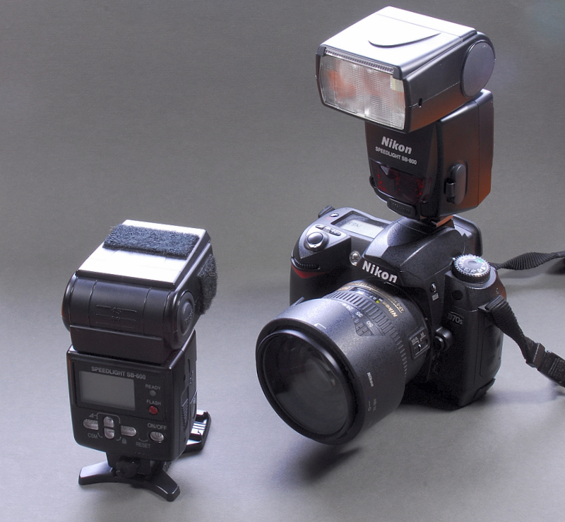 The slave unit can be positioned by hand to reduce the amount of shadow cast by the master flash.