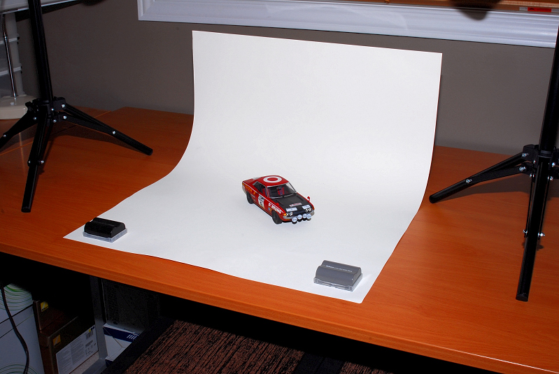 Photographing sub-assemblies and the completed model should be photographed in a different area. Most work areas tend to accumulate dust, whether from sanding or from your constant use of the area. A clean and relatively dust free area is ideal to shoot your models as any amount of dust on the model will clearly be on display and diminish the quality of the photos. Use a non fibrous, matt finish background for your model. Thin stock coloured artist Bristol board works nicely.
