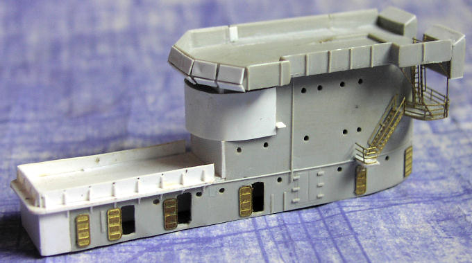 •The mounting holes for the searchlights in the rear corners of the deck were filled because the signalling lamps in this area were actually mounted rather further forward, before the mainmast struts.