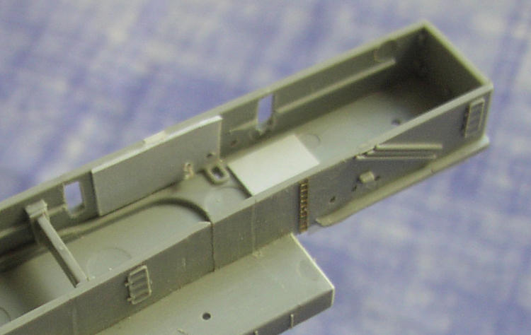 Other additions included two work benches and the access hatch in the deck. Support brackets for the underside of the platform were cut from styrene strip.