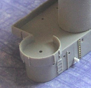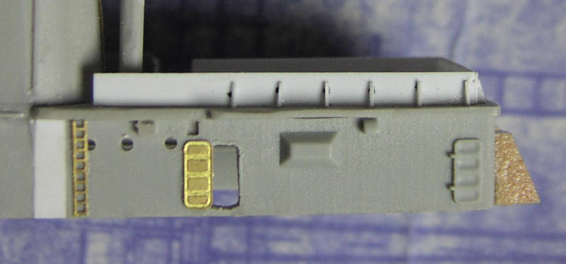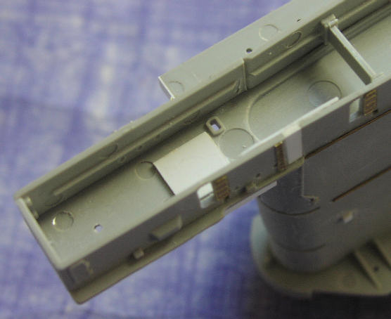 Above: Joggles removed from structure and sides made straight. The rectangle of white styrene sheet on the deck head was to seal a gap left after removing some irrelevant moulded detail on the upper side.