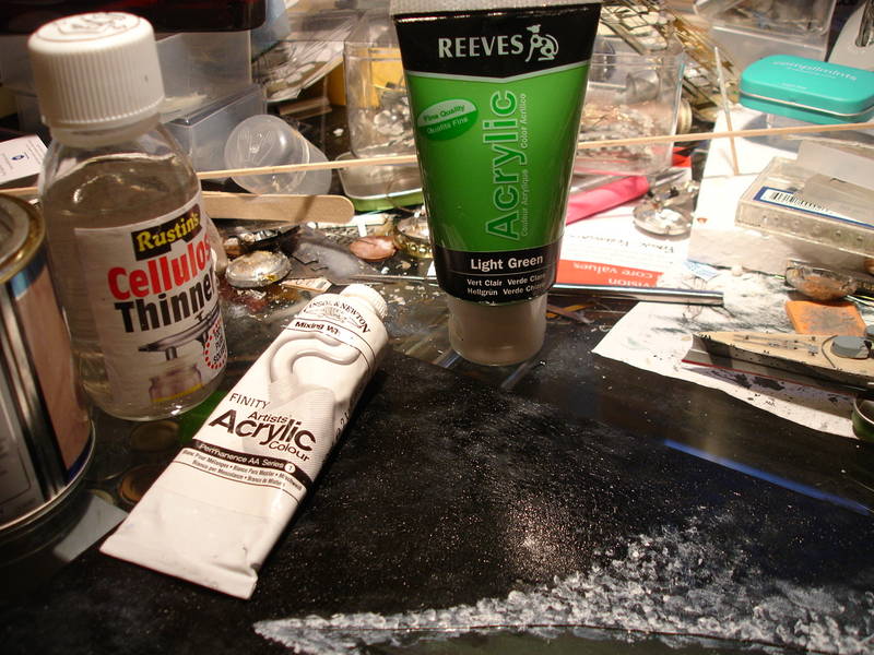 Also to help highlight the model around the hull, I use a green mixed with white to achieve the various shades of thin water mixed with the foam.
