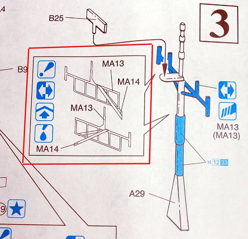 1. The PE yards for the foremast (immediately behind the radar) are represented in the instruction sheet (point 3 - pieces MA13 and MA14) but there is no trace of them in the PE fret. Since I cut away the plastic parts from the mast as per instructions, I had to scratchbuild the yard. Probably, my inexperience in building ships led me to a decisive mistake, such as trusting too much in instructions.