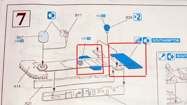2. The final “look” of my Liverpool is very different from the box-art of the kit, from recent RN pictures and finally from the Christer Johansson (ROY) model. I was surprised since my Liverpool looked like the HMS Sheffield !!! Luckily, it may reproduce an earlier configuration of the Liverpool destroyer, as documented in MaritimeQuest website. In my opinion, it should be possible to obtain a recent configuration of the ship with minor scratchbuild, using parts given in sprues A and B: