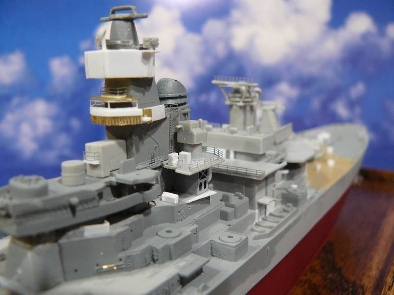 This is my second attempt at a 1/700 modern USS Iowa model. The first one was the Trumpeter kit (which is about 99% the same kit as the Skywave/Pit-Road kit). I was dissatisfied with how this first model turned out, especially the inaccurate wooden deck pattern on the aft end and the incorrect fighting top area of the kit; so I just had to do it again.