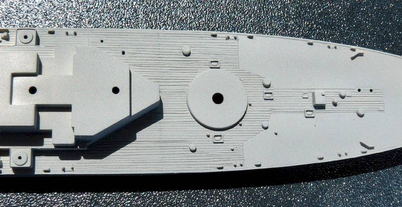 The second was to putty, sand, and scribe the correct wooden deck pattern around the aft 16" gun turret.