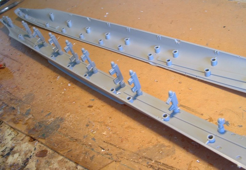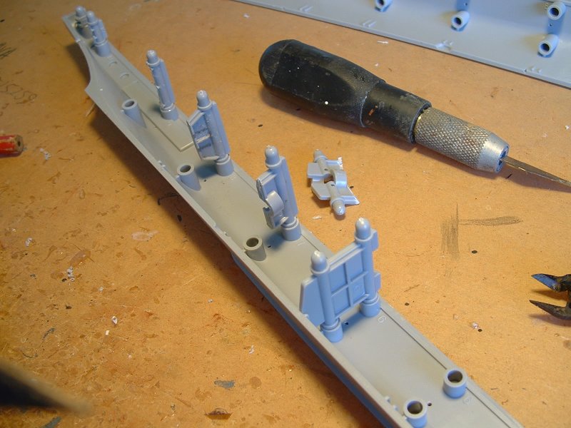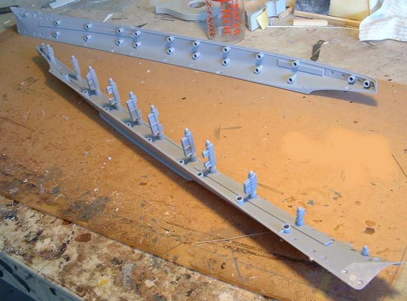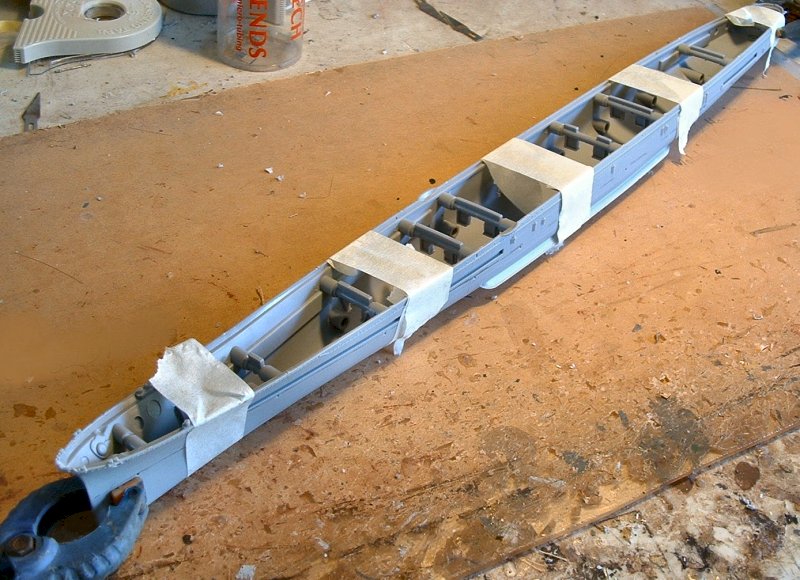 This is where I have to do more customizing to stop the dreaded 'banana' effect that may occur at a later date. The 'Banana' effect is what could happen (as it did on one of my previous builds) when the bow and stern lift a couple of millimeters because of the relatively thin flat base to be added.