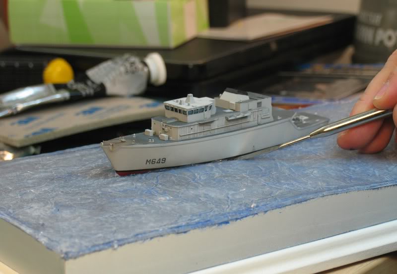 Now place the hull into its bed and use a fine spade tool to add more silicone as need to blend the hull into the seascape.