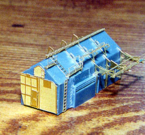 The forward hangers were assembled using WEM’s instructions. The only problem I found is with the hanger doors. The inner, lower corner of each door is angled. This angle, on the real Bismarck, fit the curve of the lower funnel. Tamiya’s kit’s funnel goes straight into the deck. Once all the P.E. details are added this becomes an almost invisible discrepancy.
