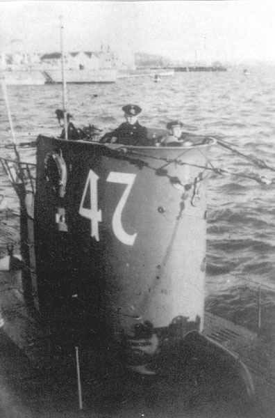- the red horseshoe-shaped lifebelts on each side of the conning tower had “U-Flottille Wegener” and “U 47” marked in white letters.