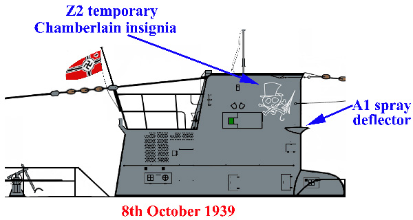 On the afternoon of the 19th August 1939, just prior to departure on the first war patrol, the pre-war features were all removed: