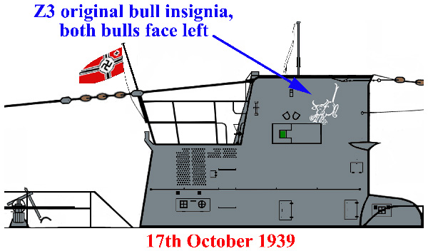 When U 47 returned from the Scapa Flow on the 17th October 1939, the tower was adorned with the original Bull Of Scapa Flow insignia. See the future “snorting bull” Feature for more details of this famous insignia