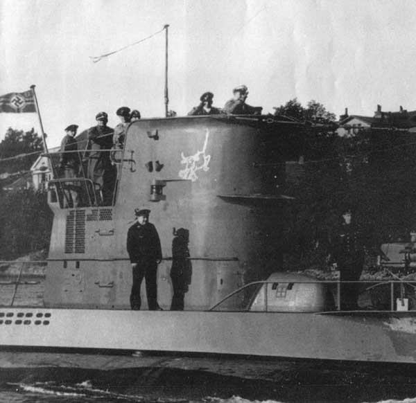 The extended spray deflector can be discerned in this photo of U 47, taken before her 3rd patrol commenced on the 16th November.