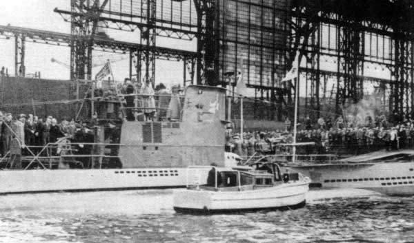 U 47 enters the Germaniawerft shipyards on the 24th October 1939. The patchy appearance of the tower is apparent. Note also that the mount for the 20mm Flak gun was on the aft deck at this stage.