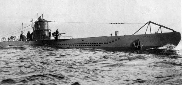 U 47 on the 17th October 1939. Rust streaks can be seen on the dark grey Schiffsbodenfarbe III Grau saddle tanks. Note also the starboard breakwater at the right hand side, and the spray deflector midway up the front of the tower. Both these features were added at some stage before October 1939.