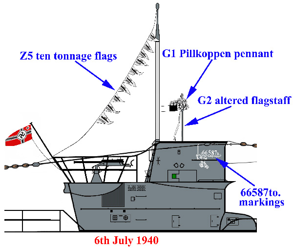 U 47 had ten victory pennant flags (erfolgswimpeln) flying from the attack periscope on the 6th July 1940.