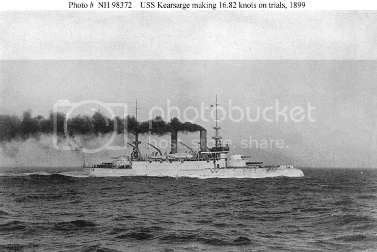This is a photograph taken in 1899, while the USS Kearsarge was making 16.82 knots on trials off the U.S. East Coast.