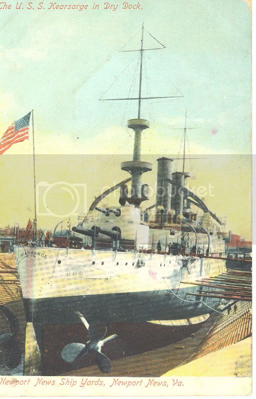 Her keel was laid down by the Newport News Shipbuilding Company of Newport News, Virginia on the 30th of June 1896. She was launched on the 24th March 1898, sponsored by Mrs. Herbert Winslow, daughter-in-law of Captain John A. Winslow, who had commanded the sloop Kearsarge during her famous battle with Alabama. This launch also afforded spectators the opportunity to view the launch of sister ship Kentucky (BB-6) only one hour later in the neighbouring berth
