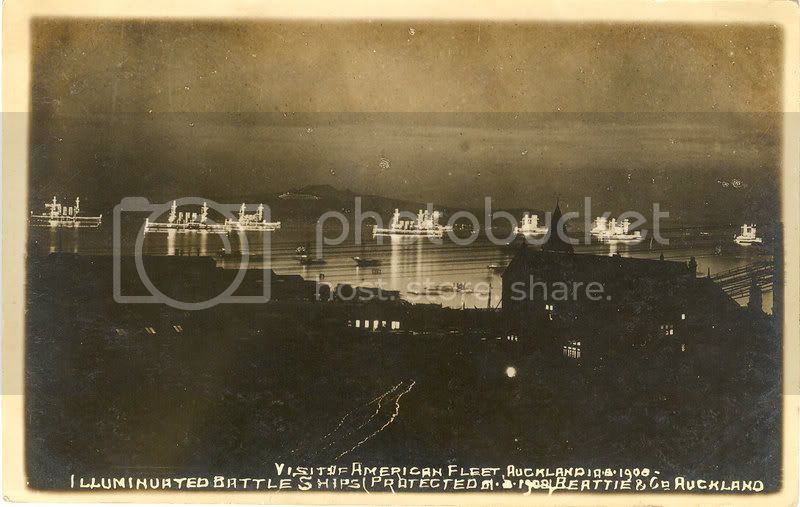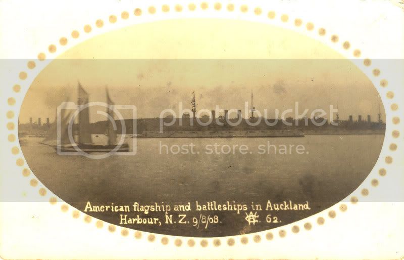 American Flagship and battleships in Auckland Harbor 9 August 1908