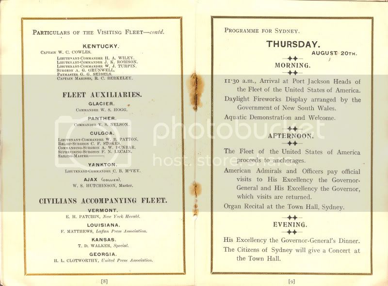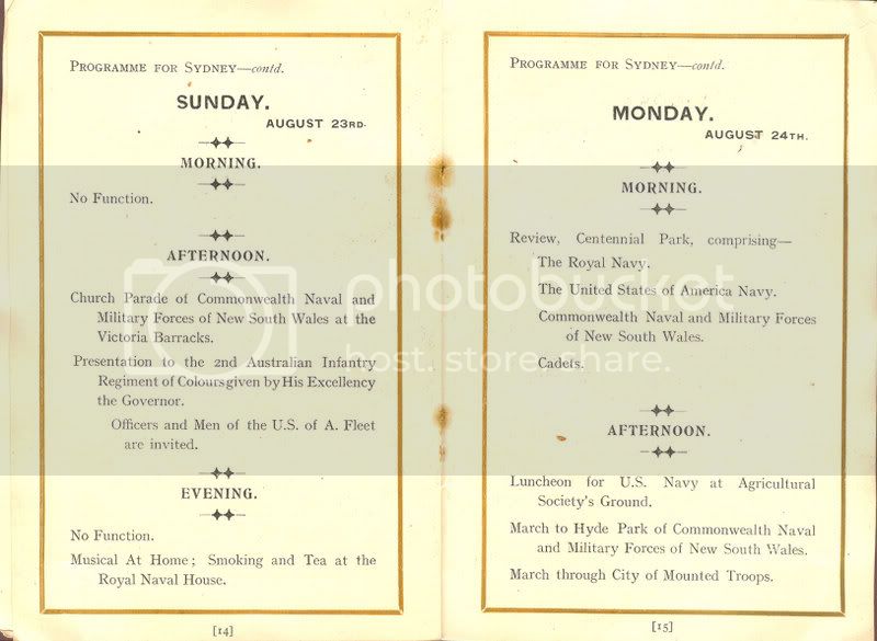 This is a great copy of the program of the Fleet’s activities in Sydney.