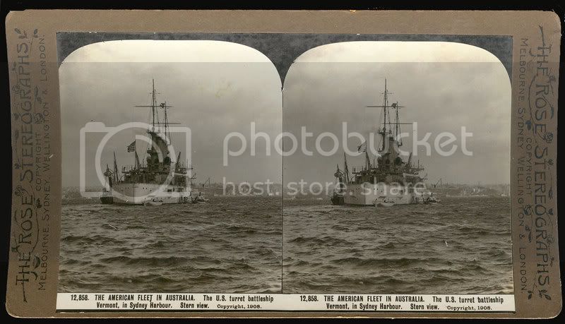 The U.S. turret battleship Vermont, in Sydney Harbor.