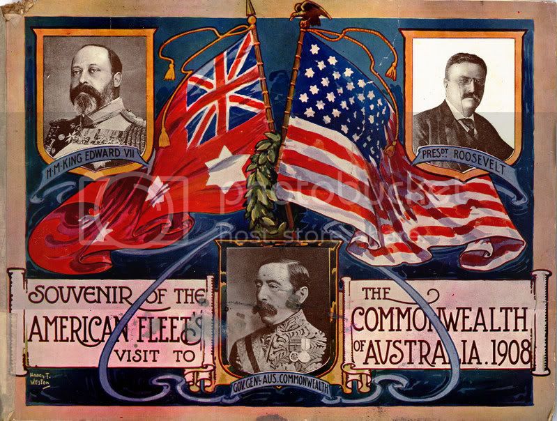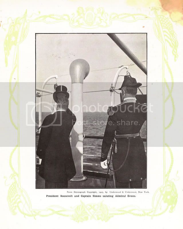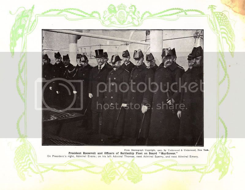 The booklet below was issued to commemorate the Fleet's arrival and contains pictures of the departure from Hampton Roads and photos of the ships.