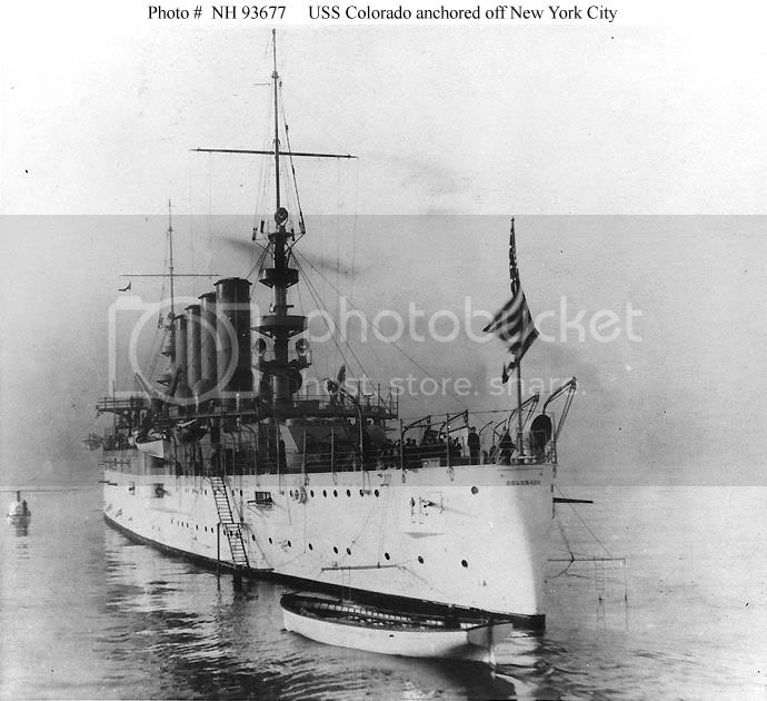 Colorado returned to the East Coast and anchored at Oyster Bay, New York, during the Presidential Naval Review held on 4 September 1906. President Teddy Roosevelt reviewed the fleet anchored there. Some of the ships that were reviewed by President Roosevelt were her sister ship the USS Pennsylvania, along with the USS Virginia BB-13, USS New Jersey B-16, USS Florida Monitor No. 9, USS Denver C-14, USS Des Moines C-15, the Auxiliary Cruiser USS Yankee, USS Hopkins. From 1906 to 1909, the Marine Detachment onboard the USS Colorado was commanded by Captain Douglas C. McDougal, MC. McDougal would later become a Major General, and retired from military service on 1 January 1940 with the rank of Major General. On 7 September 1906, she sailed for duty with the Asiatic Fleet. She visited Bombay and Manila during 1906.