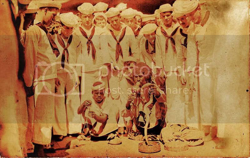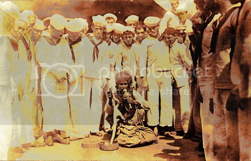 Onboard the ships venders and snake charmers showed up each day to earn the coins of sailors while swimmers in the waters were willing to dive for coins tossed from the ship. The decks were a showplace for jewellery vendors and cobras fighting mongooses.