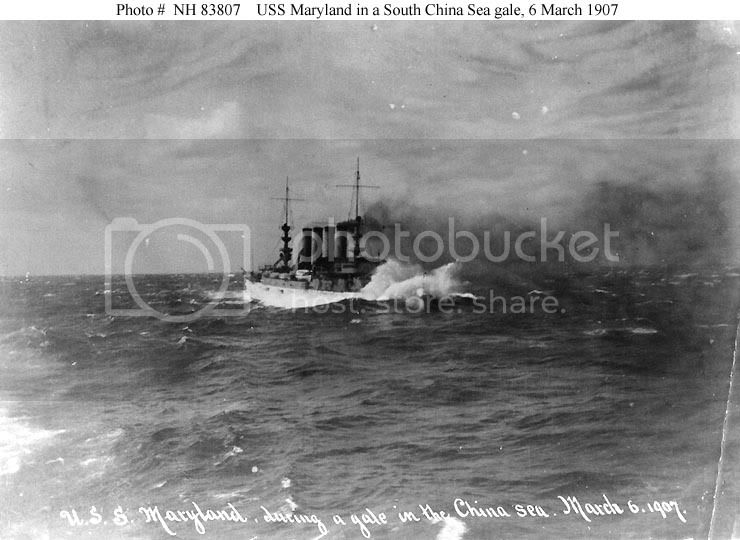In October 1905, following shakedown, Maryland joined the U.S. Atlantic Fleet for operations along the East Coast and in the Caribbean, where she took part in the 1906 winter maneuvers off Cuba. The next summer, she conducted a training cruise for Massachusetts Naval Militiamen, and then readied for transfer to the Pacific. Departing Newport 8 September 1906, she sailed, via San Francisco and Hawaii, for the Asiatic Station where she remained until October 1907.
