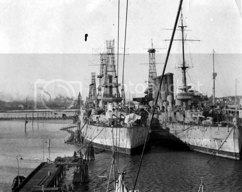 Here is a rather sad picture of the USS Maryland moored alongside the USS Rhode Island at Mare Island in 1922. Both ships were decommissioned at this stage.