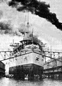 Here she is in drydock with her bottom cleaned and freshly painted circa 1911