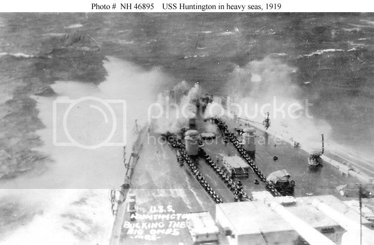 Here is a picture that can only be described as “:Bucking the big ones” steaming through the heavy seas while transporting troops home from France 1919.